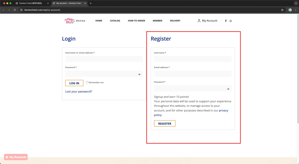 Fill up your personal information and click "REGISTER". Then, you are officially a FarmersFresh Member!